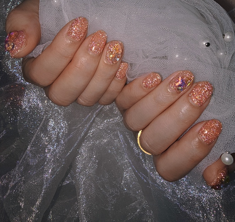 パラジェルをベースに、フォルム形成、一層残しで付け替えをしています。